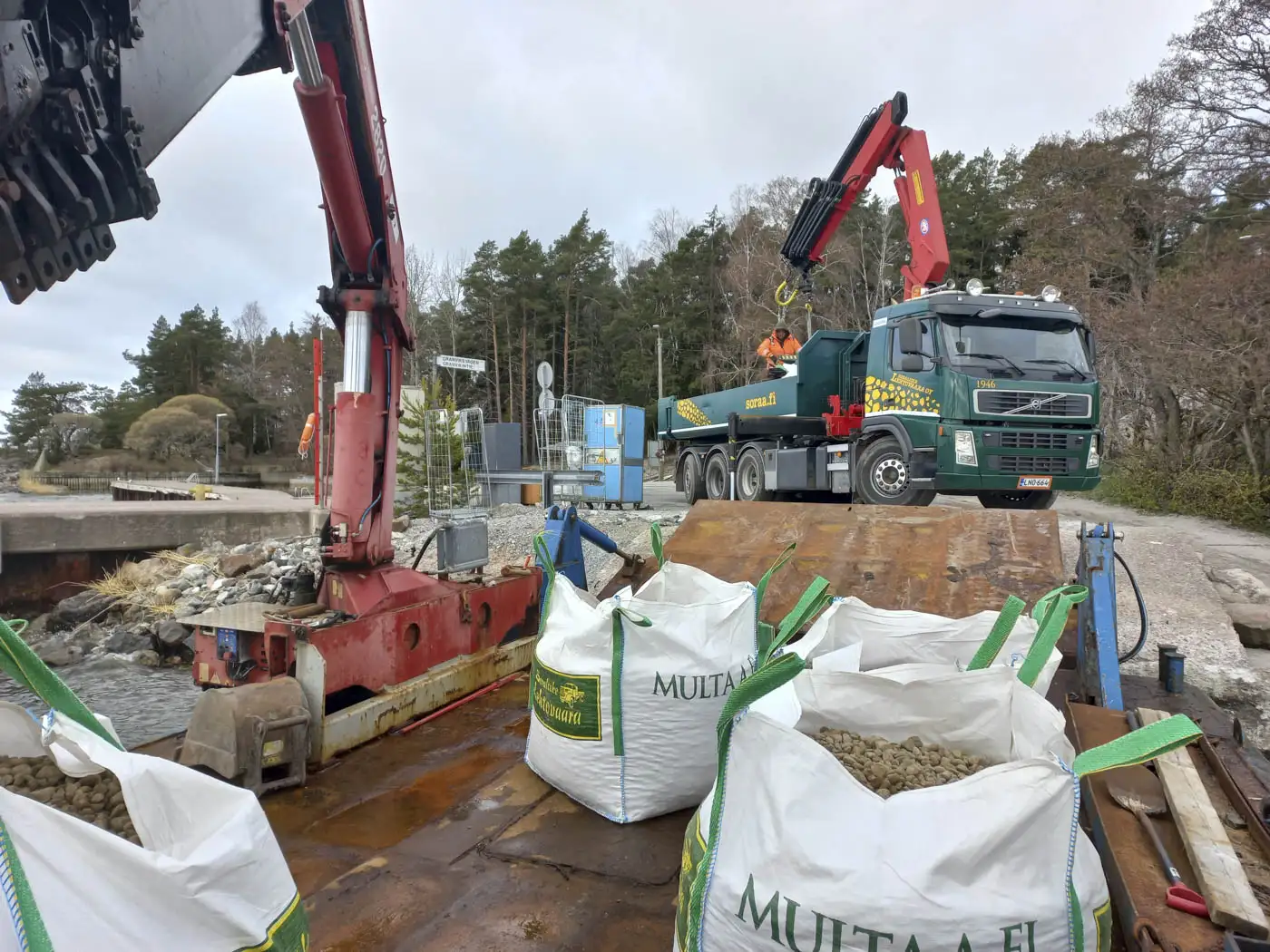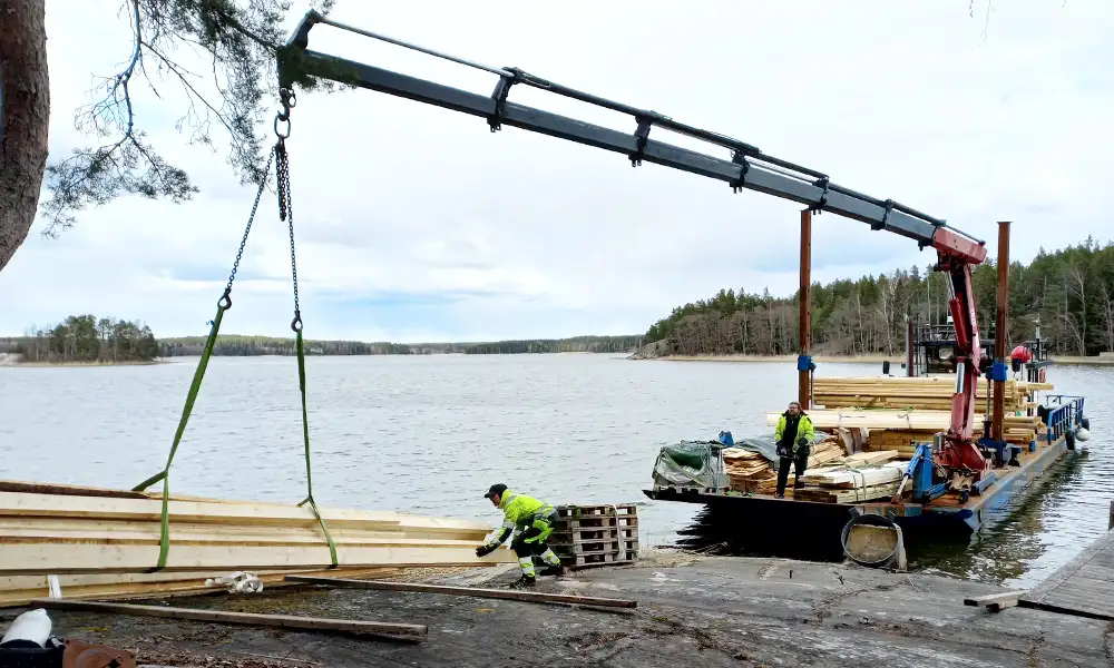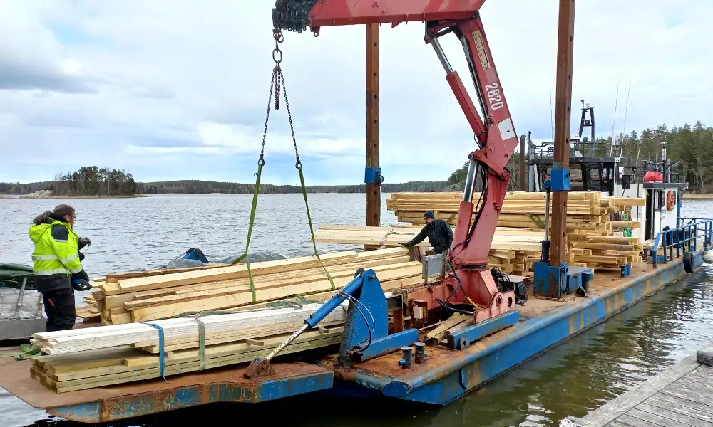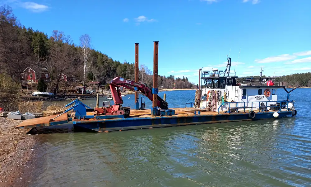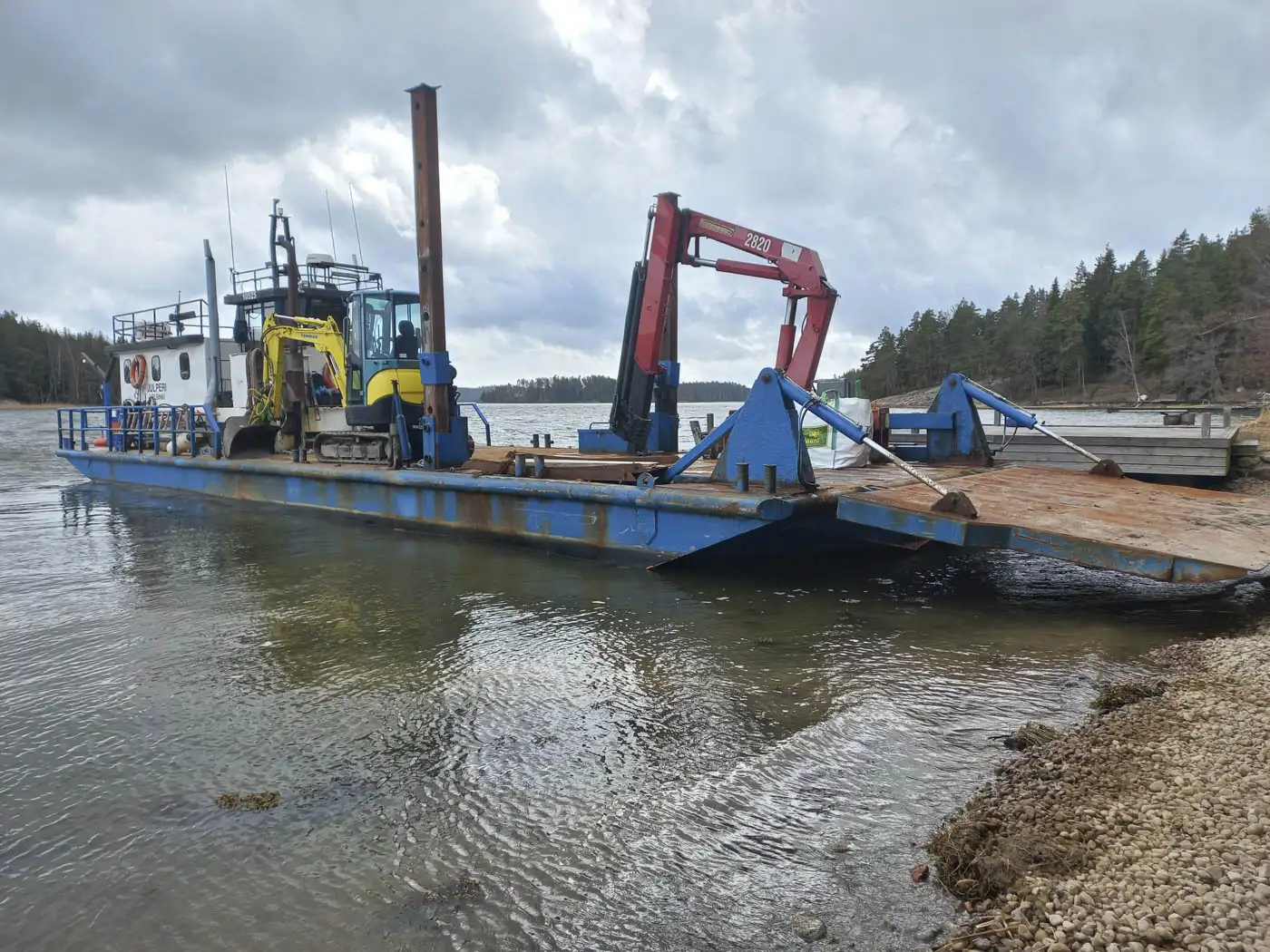 Julperi-aluksella pystymme toteuttamaan hankalatkin merityöt kustannustehokkaasti. Aluksen mitat ovat 26 x 6 m, syväys 1 m, kuormattuna enintään 1,7 m ja kantavuus 36 tn. Aluksessa on 28 tonnin nosturi, jonka ulottuvuus on 21 metriä.